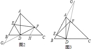 (2)分两种情况:①在等腰△EFG中,EF=EG,由∠EAF=∠EDF=90°得到A、E、D、F四点共圆,根据圆周角定理得到∠BAD=∠EFG 于是得到∠BAD=∠G,根据等腰三角形的判定得到AD=DG 推出△BAD≌△EFD 得到EF=AB,根据勾股定理列方程即可得到结果②若EF=GF,根据直角三角形的性质即可得到结论.
