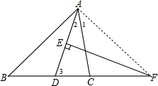 分析 连结FA,如图,根据线段垂直平分线性质得FA=FD,则利用等腰三角形的性质得∠1+∠2=∠3,由于FD2=FB•FC,则FA2=FB•FC,加上∠AFC=∠BFA,于是可判断△FAC∽△FBA,根据相似三角形的性质得∠1=∠B,接着利用三角形外角性质得∠3=∠B+∠BAD,所以∠2=∠BAD,于是可判断AD平分∠BAC.