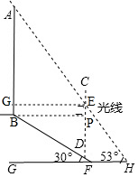 分析 作CG⊥AB、作BP⊥DE,在Rt△BDP中求得DP=15、PB=BDcos∠DBP=15$\sqrt{3}$,继而知PE=BG=4,在Rt△ACG中求得AG=$\frac{GE}{tan∠EAG}$=$\frac{15\sqrt{3}}{tan37°}$,根据AB=AG+BG得出答案.