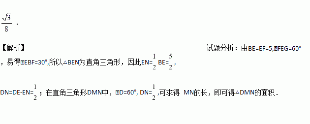 如图,△ABC、△DCE、△FEG为等边三角形,边长分别为2、3、5,且从左至右如图排列,连接BF,交DC、DE分别于M、N两点,则△DMN的面积为______.