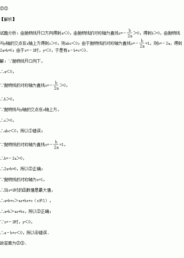 ①abc>0;②2a+b=0;③当x≠1时,a+b>ax2+bx;④a﹣b+c>0.