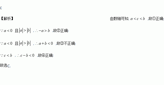 已知a,b,c三个数在数轴上对应点的位置如图所示,下列几个判断:①a<c<b;②-a<b;③a+b>0; ④c-a<0中,错误的个数是( )个.