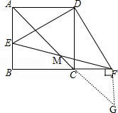 (2)证明;过点F作GF⊥CF交AC的延长线于点G,则∠GFC=90°.AB∥GF.得出∠BAC=∠G.由正方形的性质证出FC=FG.得出AE=FG.由AAS证明△AEM≌△GFM,得出ME=MF即可.