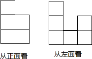 分析:由已知条件可知,主视图有2列,每列小正方数形数目分别为3,2,左视图有3列,每列小正方形数目分别为3,1,2.据此可画出图形即可.