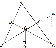 分析 延长OE至点M,使OM=OC,连接CM,由于∠BCD=∠CBE=30°,于是得到OB=OC,∠MOC=30°+30°=60°,推出△OMC为等边三角形,根据等边三角形的性质得到CM=OC=OB,∠M=60°,于是得到∠DBO=∠MCE,推出△BOD≌△MCE,根据全等三角形的性质得到DO=EM,证得OE+OD=OM=OB,根据直角三角形的性质得到2OG=OB,即可得到结论.