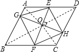 分析 根据对角线互相垂直的平行四边形是菱形.由已知条件证明OE=OF,同理OG=OH,所以四边形EGFH是平行四边形,又因为EF⊥GH,所以四边形EGFH是菱形,进而得出答案.