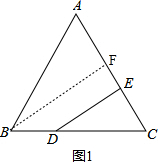 分析 首先过点B作BF⊥AC交AC于点F,根据BF⊥AC,△ABC是等边三角形,可得点F是AC的中点;然后判断出$\frac{CE}{CF}=\frac{CD}{BC}$,即可推得DE∥BF,再根据BF⊥AC,推得DE⊥AC即可.