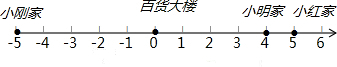 (1)以百货大楼为原点,以向东的方向为正方向,用1个单位长度表示1千米,请你在数轴上表示出小明、小红、小刚家的位置;