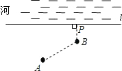 分析:根据两点之间线段最短,那么由A地经过B地,连接AB即可;河岸可看作一条直线,点B到河岸的最短距离为点B到直线l的垂线段的长度.