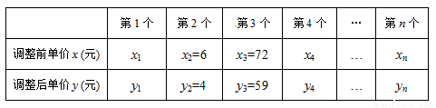 某商场为了迎接"6.1儿童节",以调低价格的方式促销n个不同的玩具,调整后的单价y(元)与调整前的单价x(元)满足一次函数关系,如下表: