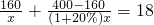 某服装厂准备加工400套运动装,在加工完160套后,采用了新技术,使得工作效率比原计划提高了20%,结果共用了18天完成任务,问原计划每天加工服装多少套?在这个问题中,设原计划每天加工x套,则根据题意可得方程为 ( )