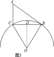 (3)如图3,当P与B重合时,圆最大.O在BC的垂直平分线上,过O作OD⊥BC于D,由BD=$\frac{1}{2}$BC=2,