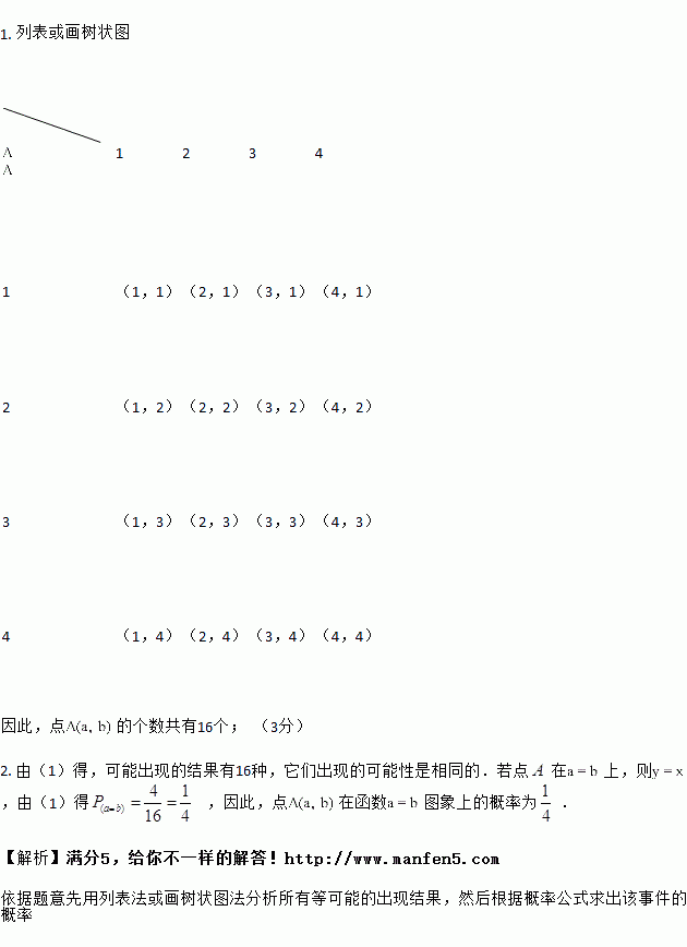 2.求点A(a,b)在函数的图象上的概率.![]()