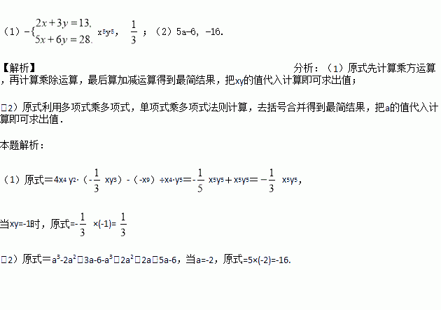 xy3)-(-x3)3÷x4·y5,其中xy=-1.