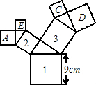 则S正方形1+正方形2+S正方形3+S正方形C+S正方形D+S正方形A+S正方形E=3S正方形1=3×92=3×81=243cm2