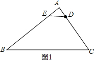解答 解:在AB上存在一点E,使得△ADE与△ABC相似,