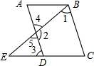 分析:首先由∠1、∠2互补,可判定AD、BC平行,然后利用平行线的性质得到所有与∠A相等的角.