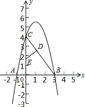 点评:此题主要考查了二次函数的综合应用以及相似三角形的性质与判定,根据已知得出△DCE∽△OCB,进而表示出EO,BO,DB,DE长是解题关键.