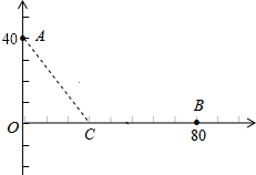 分析:作出图形,根据题意可知,AC=BC,则OC=80-BC=80-AC,在Rt△AOC中,根据勾股定理得到AC2=OC2+OA2,解方程得到AC,进一步得到点的坐标.