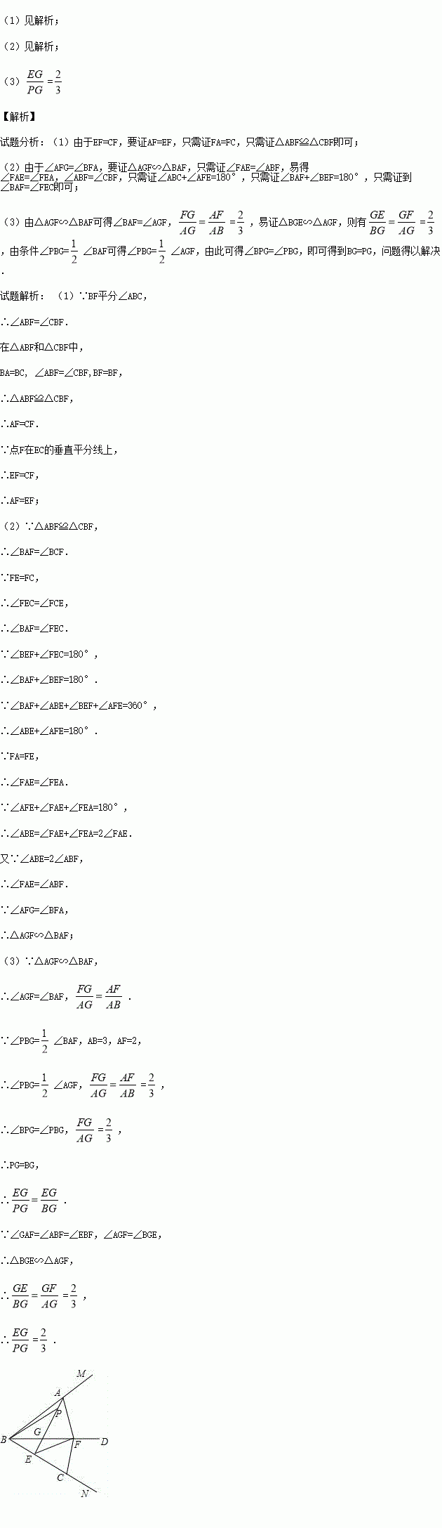 如图,射线BD是∠MBN的平分线,点A、C分别是角的两边BM、BN上两点,且AB=BC,E是线段BC上一点,线段EC的垂直平分线交射线BD于点F,连结AE交BD于点G,连结AF、EF、FC.