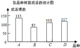 答:本次抽样统计中C种树苗成活115棵.
