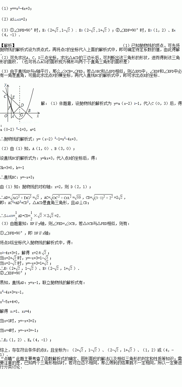 (3)点E为直线BC上一动点,过点E作y轴的平行线EF,与抛物线交于点F.问是否存在点E,使得以D、E、F为顶点的三角形与△BCO相似?若存在,求点E的坐标;若不存在,请说明理由.