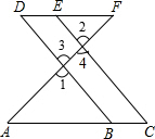 3.如图,点E在DF上,点B在AC上,∠1=∠2,∠C=∠D.
