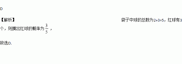 一个不透明的袋子中有3个红球,1个白球,1个黄球,这些球除颜色可以不同外其他完全相同.在袋子中随机摸出一个球是红色的概率是 ( )