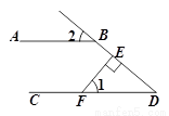 如图,AB∥CD,FE⊥DB,垂足为E,∠1=50°,则∠2的度数是( )
