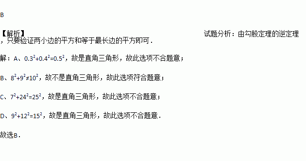 A. 0.3,0.4,0.5 B. 8,9,10 C. 7,24,25 D. 9,12,15