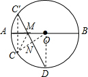 分析 作点C关于AB的对称点C′,连接C′D与AB相交于点M,根据轴对称确定最短路线问题,点M为CM+DM的最小值时的位置,由AB是⊙O的直径,$\widehat{AB}=2\widehat{AD}$=6$\widehat{AC}$,求得$\widehat{AC}=\frac{1}{2}\widehat{CD}$,根据轴对称的性质得到$\widehat{AC}=\widehat{AC′}$,于是得到$\widehat{C′C}=\widehat{CD}$,根据垂径定理得到OC⊥C′D,C′D=2DN,解直角三角形即可得到结论.