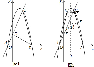 (3)作EH∥y轴交AC于H,如图2,设E(m,-m2+3m+4)(-1<m<2),则H(m,2m+2),则EH=-m2+m+2,利用三角形面积公式和S△ACE=S△AEH+S△CEH得到-$\frac{3}{2}$m2+$\frac{3}{2}$m+3=$\frac{27}{8}$,解得m1=m2=$\frac{1}{2}$,则得到E($\frac{1}{2}$,$\frac{21}{4}$),再利用而此函数的性质得∴抛物线的对称轴为直线x=$\frac{3}{2}$,顶点坐标为($\frac{3}{2}$,$\frac{25}{4}$),于是得到点E关于直线x=$\frac{3}{2}$的对称点F的坐标为($\frac{5}{2}$,$\frac{21}{4}$),然后分类讨论:当以EF为对角线时,易得点P在顶点,坐标为($\frac{3}{2}$,$\frac{25}{4}$),当以EF为边时,如图2,根据平行四边形的性质得EF∥PQ,EF=PQ=2,于是确定P点的横坐标为-$\frac{1}{2}$或$\frac{7}{2}$,然后计算出对应的函数值即可得到P点坐标.