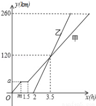 ¼×¡¢ÒÒÁ½³µ´ÓAµØÊ»ÏòBµØ£¬²¢ÒÔ¸÷×ÔµÄËÙ¶ÈÔÈËÙÐÐÊ»£¬¼×³µ±ÈÒÒ³µÔçÐÐÊ»2h£¬²¢ÇҼ׳µÍ¾ÖÐÐÝÏ¢ÁË0.5h£¬ÈçͼÊǼ×ÒÒÁ½³µÐÐÊ»µÄ¾àÀëy£¨km£©Óëʱ¼äx£¨h£©µÄº¯ÊýͼÏó£®