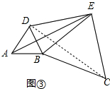 (3)如图③中,连接DC,先利用勾股定理的逆定理证明△DEC是直角三角形,得∠DEC=90°即可解决问题.