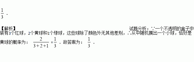 一个不透明的盒子中装有3个红球,2个黄球和1个绿球,这些球除了颜色外无其他差别,从中随机摸出一个小球,恰好是黄球的概率为________________.