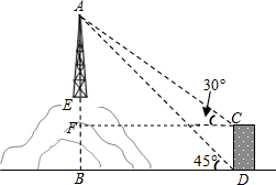 分析 根据楼高和山高可求出EF,继而得出AF,在Rt△AFC中表示出CF,在Rt△ABD中表示出BD,根据CF=BD可建立方程,解出即可.