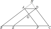 分析 由于AG=3,DG=4,AG是平行四边形ABED的高,DG是平行四边形AFCD的高,故两平行四边形的面积相等,都为36,由此可以求出DE,AB,CD,AF又△AGD是直角三角形根据勾股定理可以求出AD,BE,CF,然后延长CD与BA延长线交于H,可得△BHC是直角三角形,然后利用勾股定理和已知条件可以求出CH,BH,接着求出BC,最后就可以求出ABCD的周长.