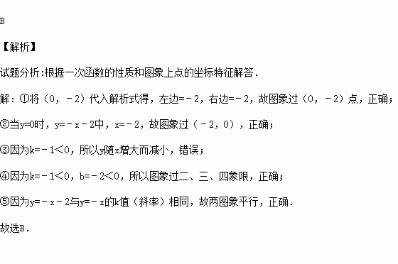 关于函数y=﹣x﹣2的图象,有如下说法: