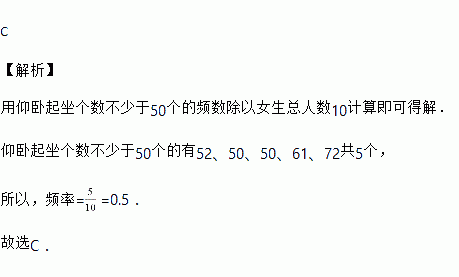 在一次体育测试中,10名女生完成仰卧起坐的个数如下:38,52,47,46,50,50,61,72,45,48,则这10名女生仰卧起坐个数不少于50个的频率为( )