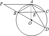 如图,BD是圆O的直径,AB=AC,AD交BC于点E,延长DB到F,使BF=BO,连接FA.