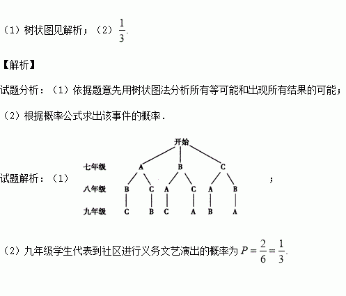 (2)求九年级学生代表到社区进行义务文艺演出的概率.