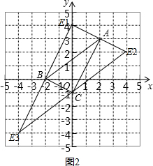 分析 (1)根据矩形的性质,由AC,BC的位置及长度可确定D点位置及坐标,如图所示;(2)根据平行四边形的判定找出E点位置即可,不要漏解.