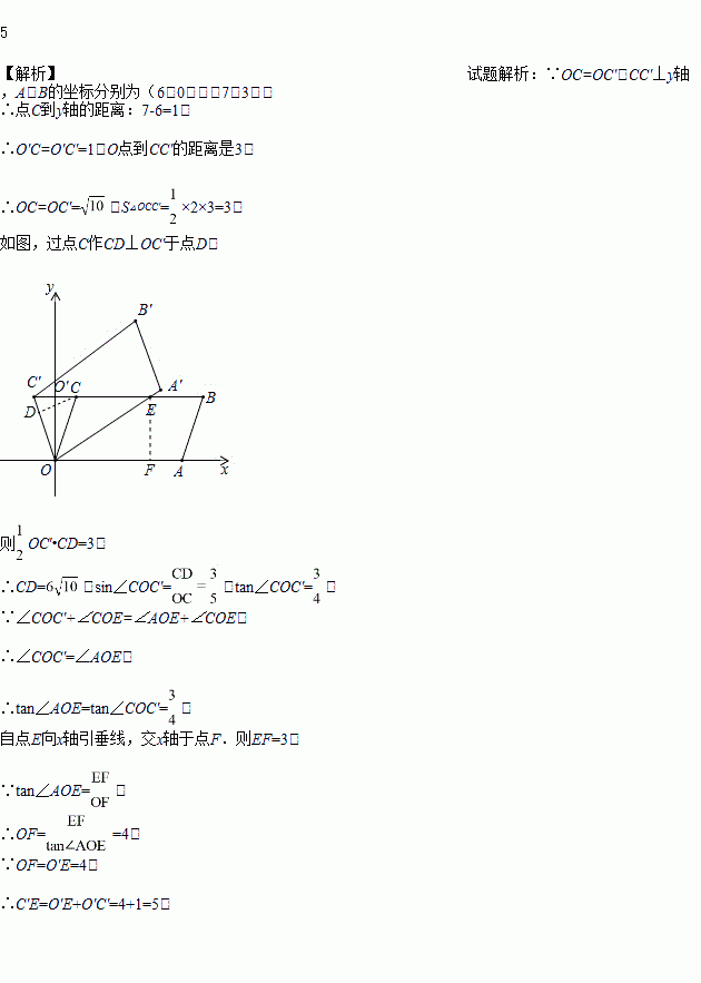 如图,在平面直角坐标系xOy中,平行四边形OABC的顶点A,B的坐标分别为(6,0),(7,3),将平行四边形OABC绕点O逆时针方向旋转得到平行四边形OA′B′C′,当点C′落在BC的延长线上时,线段OA′交BC于点E,则线段C′E的长度为__.