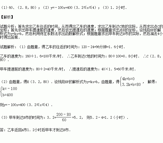 (1)甲车提速后的速度是 千米/小时,点C的坐标是 ,