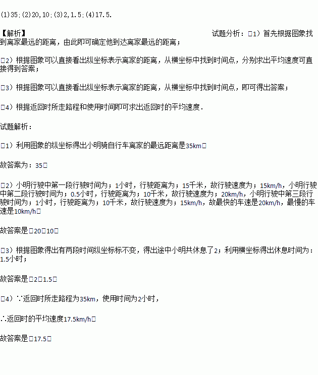 £¨1£©Ð¡ÁÖÆï×ÔÐгµÀë¼ÒµÄ×îÔ¶¾àÀëÊÇ_________km£»