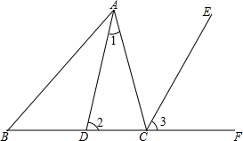 分析:根据勾股定理的逆定理证明△ACD为直角三角形,求出∠ACD=90°,再求出∠ACB=45°问题即可解决.