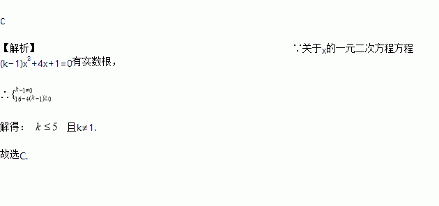 若关于x的一元二次方程方程(k﹣1)x2+4x+1=0有实数根,则k的取值范围是( )