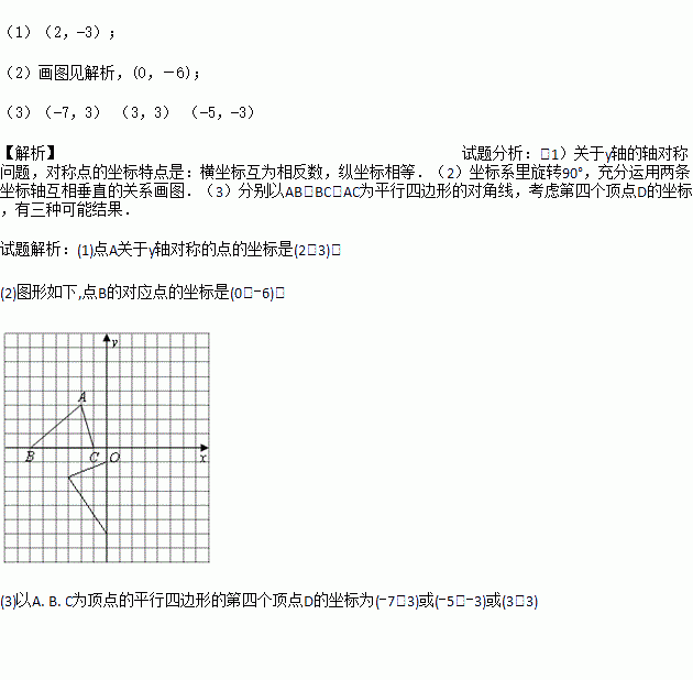 (3)请直接写出:以A、B、C为顶点的平行四边形的第四个顶点D的坐标.