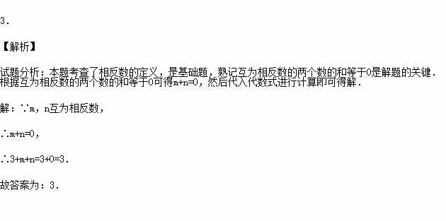已知a、b互为倒数,c、d互为相反数,则代数式3ab―c―d的值为 .