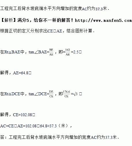 :1.求工程完工后背水坡底端水平方向增加的宽度AC.(结果精确到0.1米.参考数据:sin68°≈0.93,cos68°≈0.37,tan68°≈2.50,